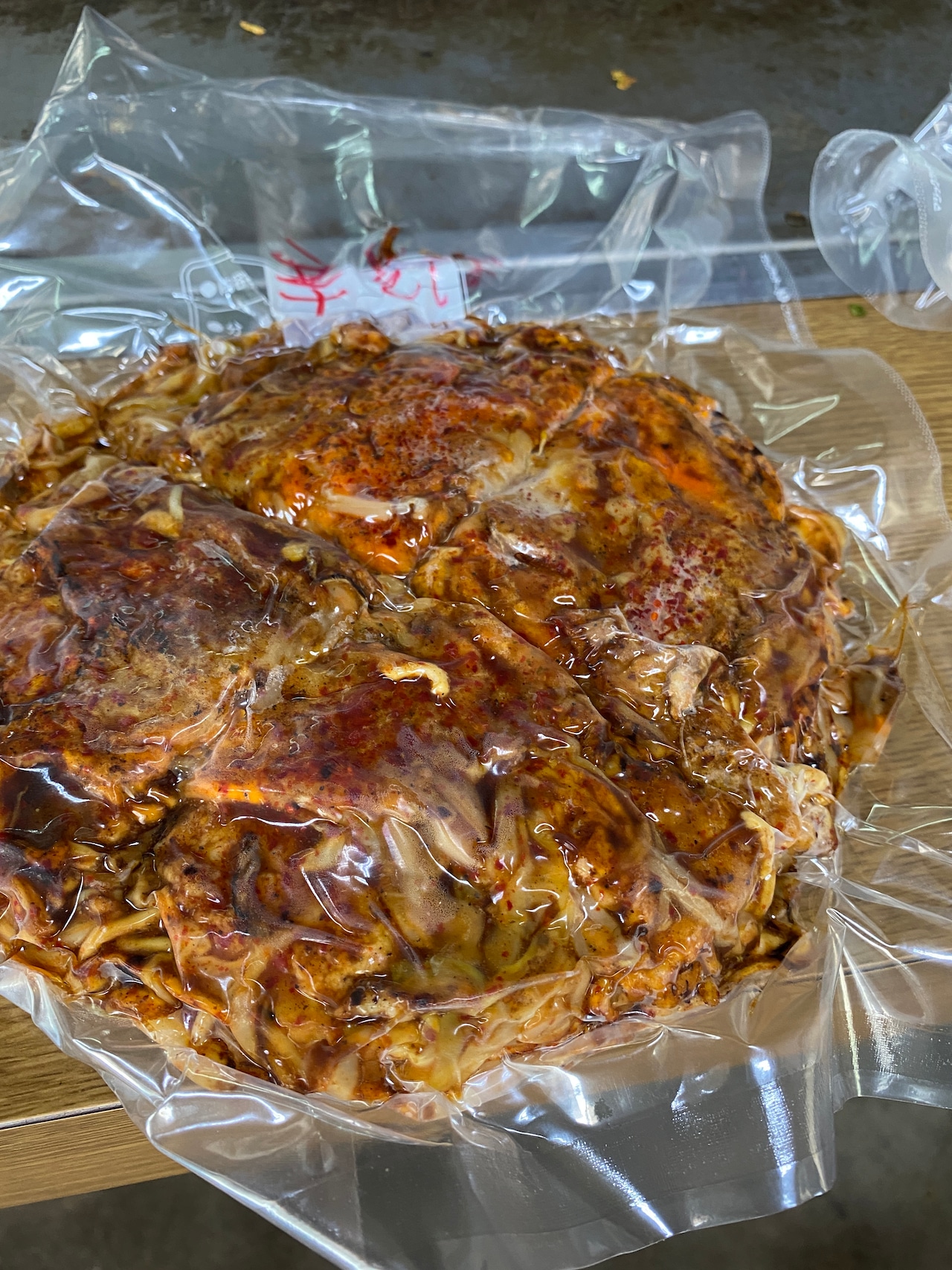 2代目大将が1枚1枚丁寧に焼き上げ美味しさそのままに瞬間冷凍したお好み焼きとなります。